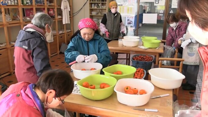 12日は朝から地域の住民や市の職員などおよそ20人が、駅のある大船渡市三陸町で収穫されたたカキの皮をむきました。