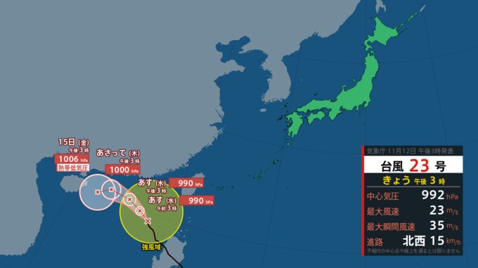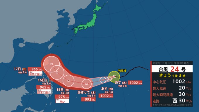 【台風情報・最新】“4つ目の台風”「25号(ウサギ)」は日本に向けカーブしながら北上か… 日本の南側で蠢く台風・雨風のシミュレーションあり【12日午後4時30分・最新進路更新】 青森テレビ 2024年11月12日(火) 16:30 国内 4つの台風の「最新進路予想」