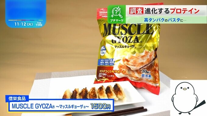 鶏ささみを使用した「MUSCLE GYOZA〜マッスルギョーザ~」(信栄食品・1500円/40個入)は、タンパク質が1.5倍の商品です。