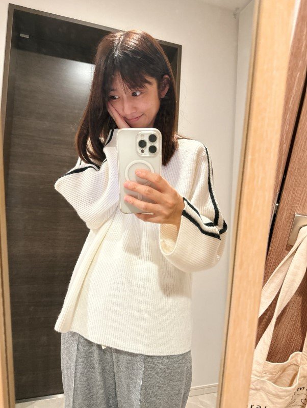 そして「楽ちんニットにパンツです」と、私服を紹介。
