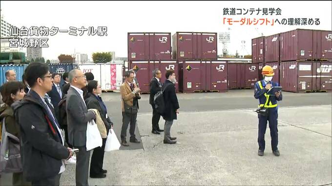 トラックのドライバー不足や環境負荷の低減に向けた取り組みです。鉄道コンテナの見学会が仙台市で開かれ、参加者が貨物輸送を鉄道輸送に転換する「モーダルシフト」への理解を深めました。