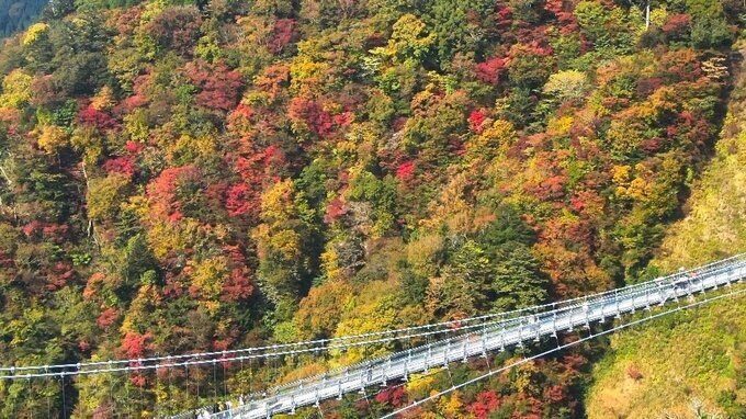 今年は全国的に紅葉の進みがゆっくりとなっていますが、大分県九重町の観光スポット、九重“夢”大吊橋では周囲の山の葉が色づき、見ごろを迎えています。高さ173メートルの橋から眺める紅葉の大パノラマ。四季折…