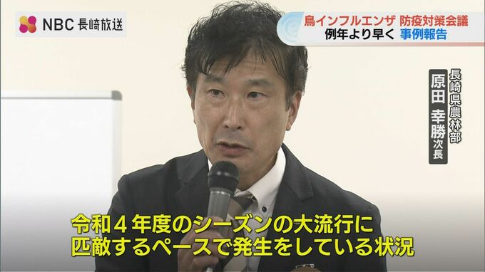 長崎県の原田次長は「2023年度のシーズンの大流行に匹敵するペースで発生している。緊張感を持って発生防止に務める必要がある」として警戒を呼び掛けており、県は養鶏関係者に対し、異常があった場合の早期通報を呼びかけています。