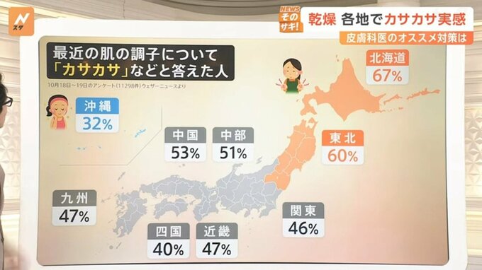気象情報サービスのウェザーニュースが10月18~19日に行ったお肌の調子についてのアンケートです。
