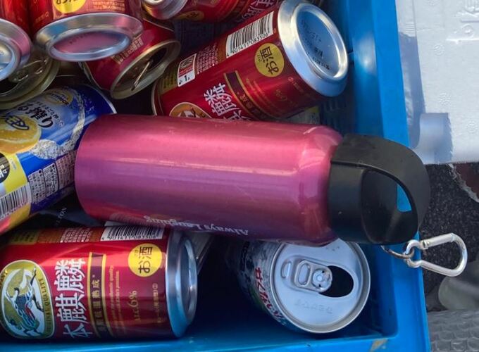 滝沢さんは「不思議と缶回収の時によく水筒が出されます。」と指摘。水筒は、本体内側のステンレスや本体外側の部品に使われているゴムやプラスチックなど、様々な素材を組み合わせて作られていて、缶とは全く違うものであることから「マイボトル等は缶資源ではなく不燃ごみになります!」と注意喚起しています。