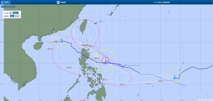 日本の南側には「3つの台風」が確認されており、23号と24号については、今のところ日本に接近する予想はされていませんが、「台風25号(ウサギ)」については、日本に影響を及ぼす可能性もあります。