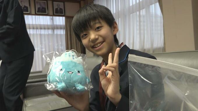 出発を前に魚津市役所を訪れたのは、清流小学校6年の廣田悠羽さんです。