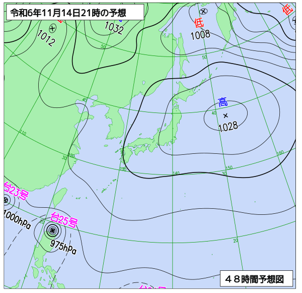【台風情報】台風25号(ウサギ)は土・日・月と「沖縄の南」で「ほとんど停滞」か 【13日午後8時50分・最新進路更新】 青森テレビ 2024年11月13日(水) 20:50 国内 24時間・48時間予想天気図 気象庁HPより 気象庁HPより