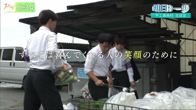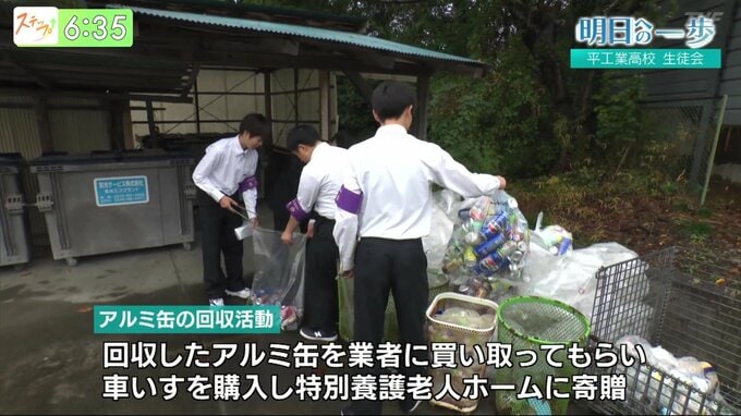 「アルミ缶を回収して車いすを購入し、老人ホームに寄付しています。」
