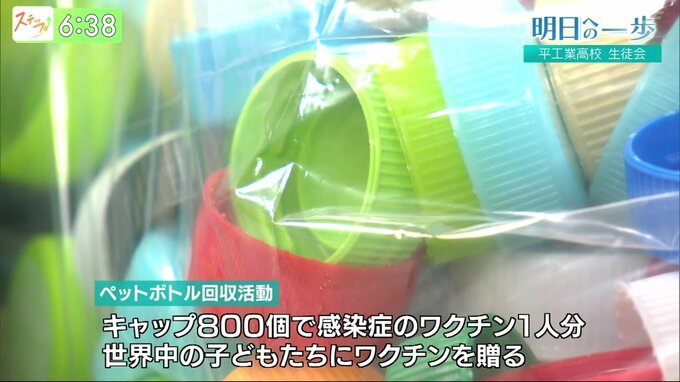 校内にある自動販売機の空き缶や先生たちが持参したアルミ缶を回収し、専門業者へ買い取ってもらいます。