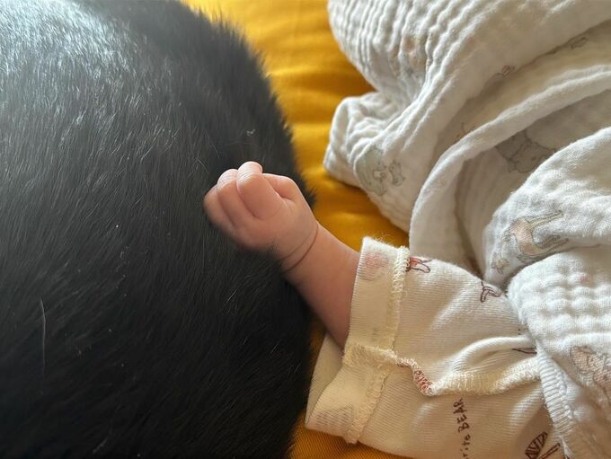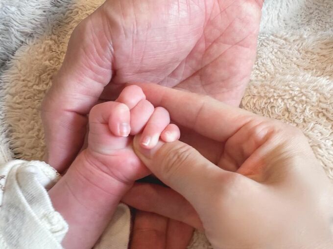 そして「いきなりのご報告で驚かせてしまってすみません。おかげさまで母子共に健康に過ごしております。」と記すと、小さな赤ちゃんの手の写真をアップ。