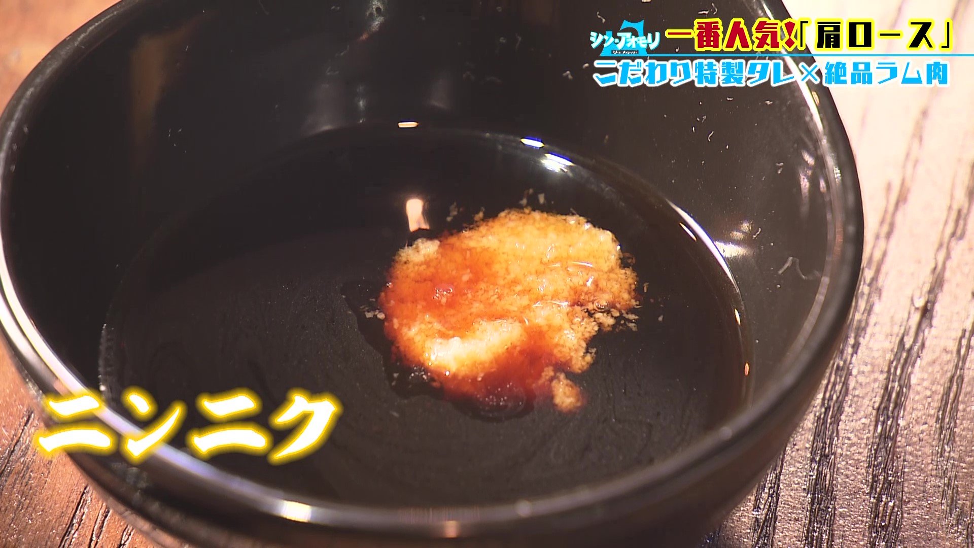 それでは、ラム肉が焼き上がったところで、食リポ。こだわりのタレと一緒にいただきましょう。こちらのタレは、ニンニクを入れるとよりおいしくいただけるそうです。果たして、そのお味は?