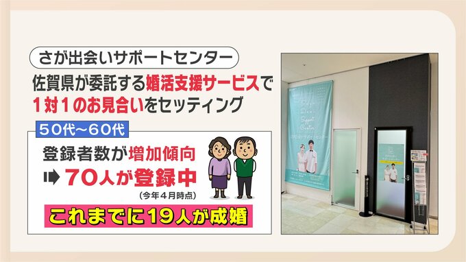 佐賀県が委託する婚活サービス「さが出会いサポートセンター」では、50代、60代の登録者も年々増加傾向にあり、2024年4月時点で70人が登録しています。