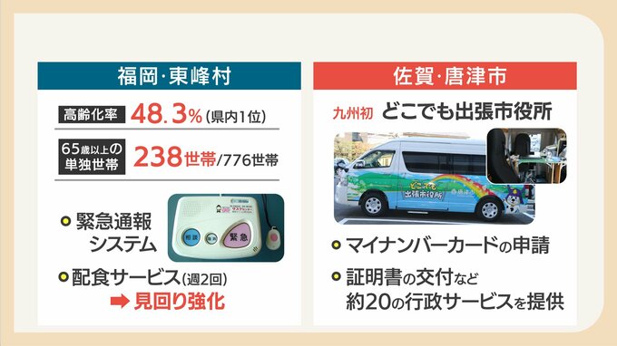 高齢化率が48.3%と、福岡県内で最も高い東峰村では、776世帯のうち、238世帯が65歳以上の単独世帯です。