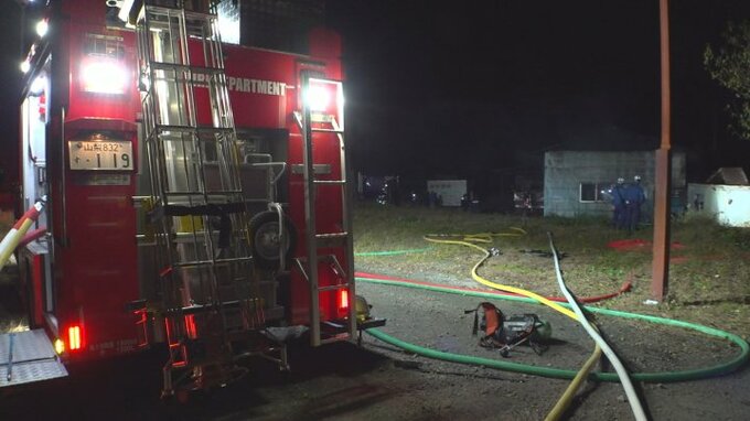 火はおよそ2時間半後に消し止められましたが、この火事で運送会社「LIFE」の倉庫1棟が全焼し、倉庫内にあった4トントラック1台などが焼けました。