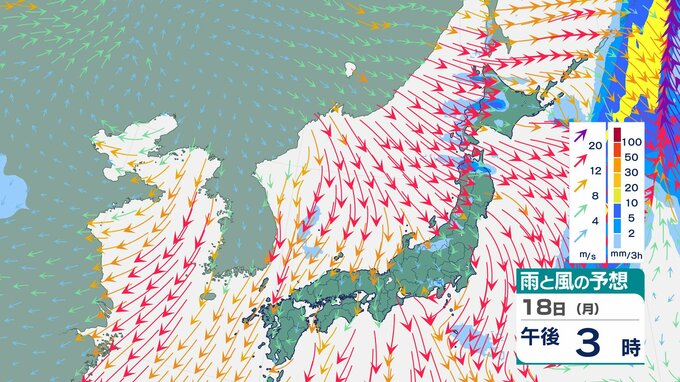 【台風情報14日午後6時更新】強い台風25号 フィリピンの東を北西へ ノロノロ16日頃から沖縄に接近のおそれ 19日に熱帯低気圧に変わる見込み チューリップテレビ 2024年11月14日(木) 19:01 国内 天気 雨と風のシミュレーション 18日(月)