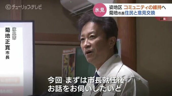 能登半島地震から10か月。11月9日に氷見市長に就任した菊地正寛市長が14日、被害の大きかった姿地区を訪れ住民と意見交換しました。転出が続き急速に過疎化が進む地区の住民に新市長はどのように答えたのでしょうか。