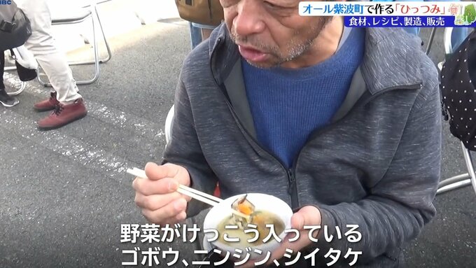 「おいしいです。野菜がけっこう入っている。ゴボウ、ニンジン、シイタケ」