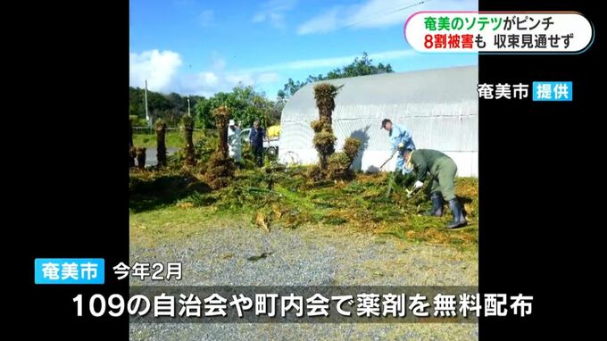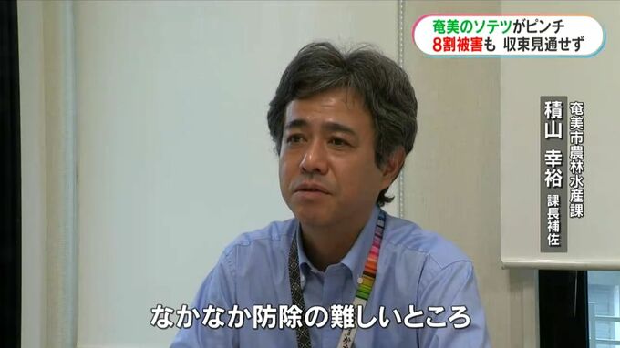 (奄美市農林水産課 積山幸裕課長補佐)「防除をしてもなかなか効果が薄いということは、葉っぱだけではなくて幹の中まで虫が入り込んでいるので、薬剤をまいてもそこまで浸透していないのではないかと。なかなか防除の難しいところ」
