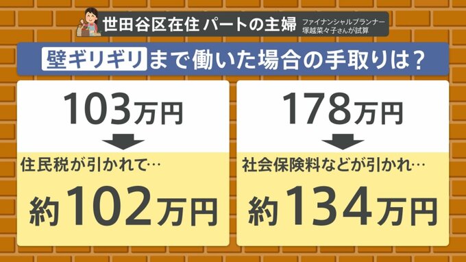 【壁ギリギリまで働いた場合の手取りは?】(世田谷区在住のパートの主婦の場合)