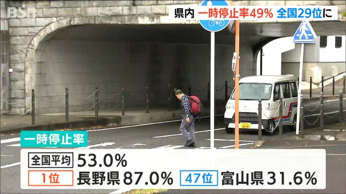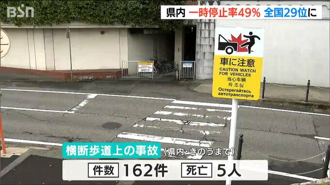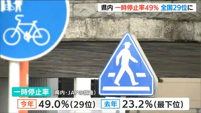 JAFが今年8月、全国で行った調査によりますと、県内の横断歩道で車が一時停止した割合は49.0%だったということです。
