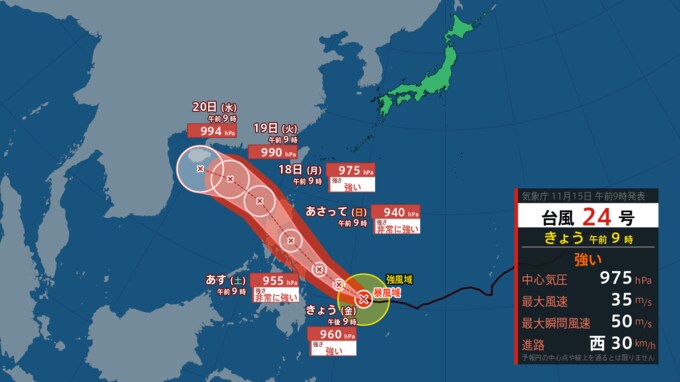【台風情報】台風25号(ウサギ)の今後は 全国の週末の天気への影響は?週間天気あり【15日正午過ぎ・最新進路更新】 青森テレビ 2024年11月15日(金) 12:30 国内 3つの台風の「最新進路予想」