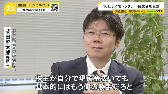 中小企業のM&Aに詳しい弁護士は、株式や出資持分を経営者1人が全て持つ場合、罪に問うことは現実的に難しいと話します。