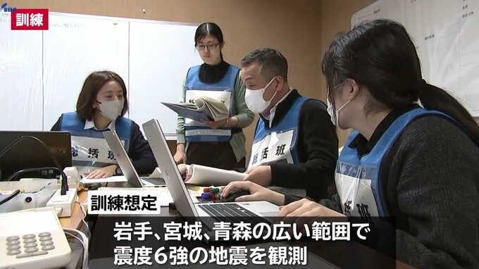 15日の訓練は岩手、宮城、青森の広い範囲で震度6強の地震が観測されたという想定で実施されました。