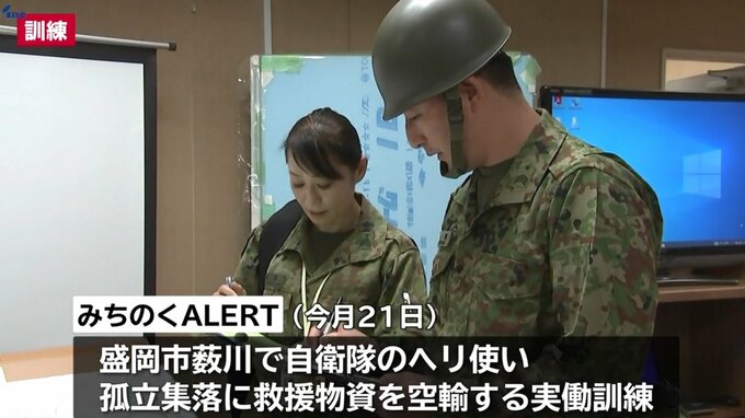 21日には盛岡市薮川で自衛隊のヘリコプターを使い孤立集落に救援物資を届ける実働訓練が行われます。