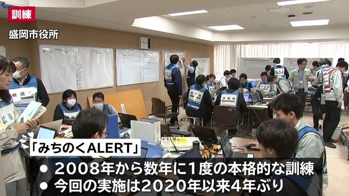 陸上自衛隊が東北各地の自治体と連携して行う訓練、「みちのくALERT」に合わせて、盛岡市役所でもきょう訓練が行われました。