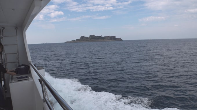 長崎港から船で約45分。徐々に「軍艦」のシルエットが近づいてきます。時を止めたその姿は、異様で神秘的ともいえる迫力を放っています。