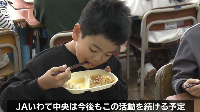 紫波町の小学校での地元産の豚肉を使った給食の提供は、JAいわて中央が生産者と協力して毎年実施しているものです。