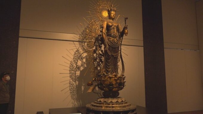 会場には、法隆寺や東大寺をはじめとする奈良県15の寺に伝わり、国宝や重要文化財に指定されている、30以上の仏像や仏画などが展示されています。