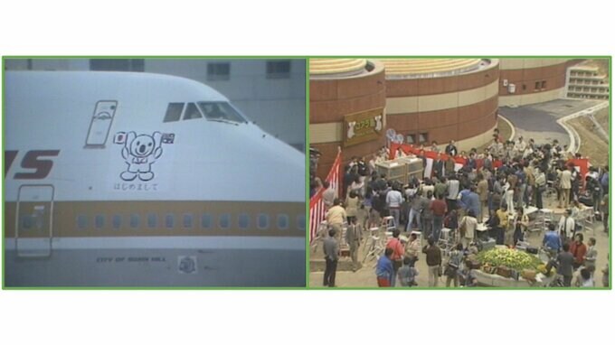 コアラが初めて日本にやってきたのは1984年(昭和59年)10月25日。午前6時すぎ、無事に成田空港に到着したオスのコアラ6頭。日本とオーストラリアの友好の証としてやってきました。その後、名古屋、鹿児島へはチャーター便で、また東京の多摩動物公園にはパトカー先導のワゴン車でそれぞれ出発しました。多摩動物公園にはコアラを一目見ようとたくさんの人や報道陣が集まりました。