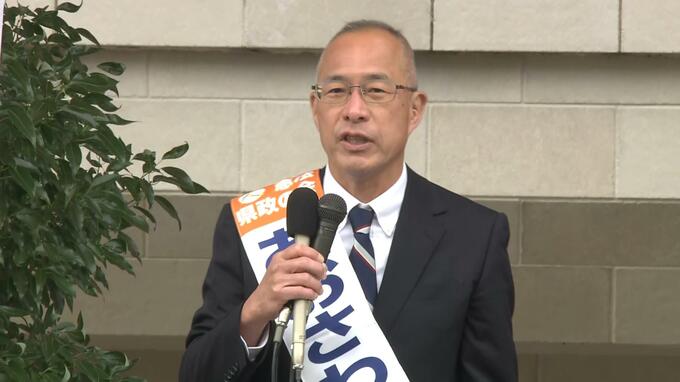 元アナウンサーで参院議員を辞職して知事選に臨む清水貴之氏(50)。高校・大学の学費軽減や子育て支援の拡充、さらに県内の観光PRなどに力を入れて、県民の生活満足度を指す「ウェルビーイング」で日本一を目指したいと訴えます。