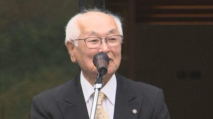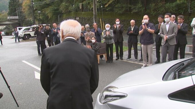 昭和、平成、令和の3つの時代を駆け抜けた辻町長が役場前で最後のあいさつに立ちました。