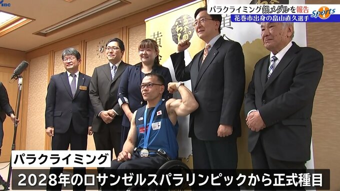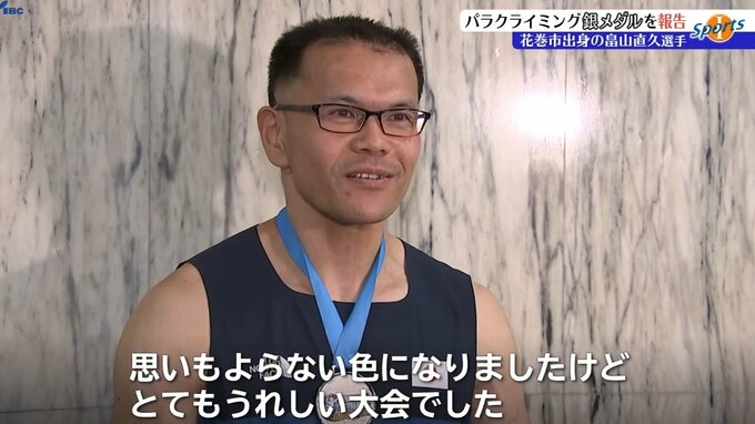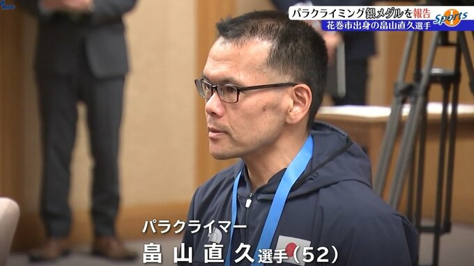 障害者スポーツ・パラクライミングの世界大会に出場した花巻市出身の畠山直久選手が岩手県庁を訪れ、達増拓也岩手県知事に銀メダル獲得を報告しました。
