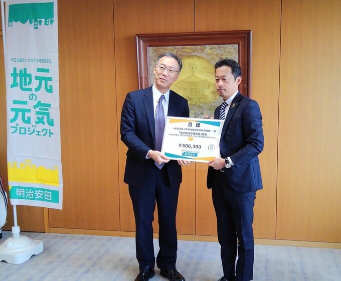 今回の寄付は、明治安田生命保険相互会社が毎年行っている「私の地元応援募金 (従業員募金と会社拠出寄付をマッチングした寄付)」の一環として、日本全国の自治体や団体に対して寄付をするもので、今回「一般社団法人次世代健康文化創造機構」が対象になりました。