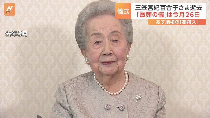 けさ、逝去された三笠宮妃百合子さまについて、宮内庁は一般の葬儀にあたる「斂葬の儀」を今月26日に行うと発表しました。101歳で皇室最高齢の百合子さまは、けさ6時32分に老衰のため逝去されました。宮内庁により…