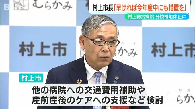 村上市の高橋邦芳市長は、市内唯一の分娩機能がなくなることから、他の病院で分娩する場合の交通費用の補助や、産前産後のケアへの支援策などを検討していくとしました。