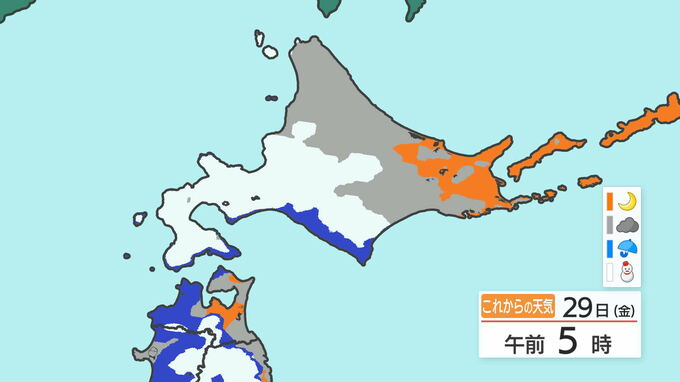 【しし座流星群出現期】時間いつ? 観察のポイント&撮影のコツ【気になる天気は?】 南日本放送 2024年11月28日(木) 12:59 国内 天気 今夜(午後8時)~あす朝(午前5時)の天気を詳しく(北海道地方)