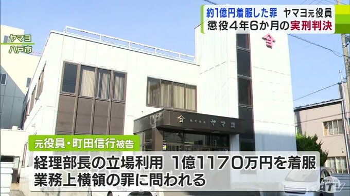 八戸市の水産加工会社「ヤマヨ」の元役員・町田信行被告(50)は、経理部長としての立場を利用して、2017年~2021年にかけて現金あわせて1億1170万円を着服したとして、業務上横領の罪に問われていました。