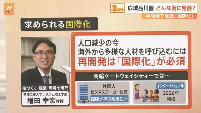 さて、この再開発ではどのようなところがポイントになってくるのでしょうか。街づくり・建築・環境を研究している芝浦工業大学システム理工学部の増田幸宏教授は「人口減少の今、海外から多様な人材を呼び込むには、再開発は『国際化』が必須」と話しています。
