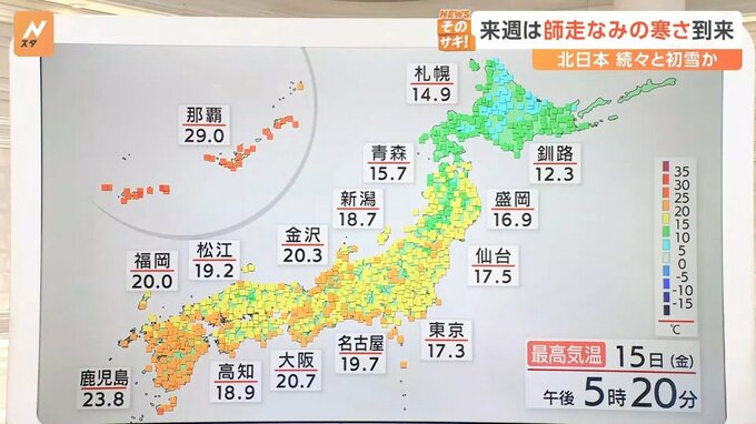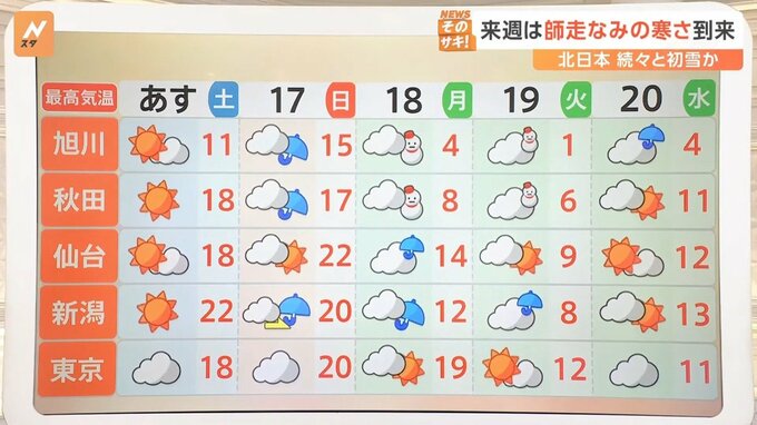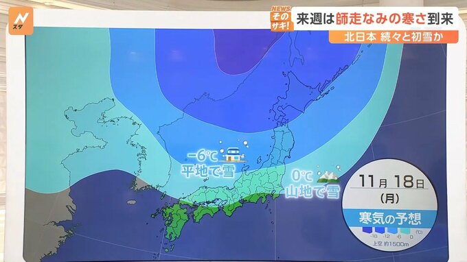 “師走並みの寒さ”到来 北日本では続々と初雪か
