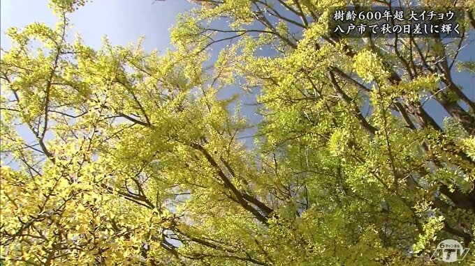 晩秋の絶景です。樹齢が600年を超す青森県八戸市根城の「大イチョウ」が、秋の日差しのもと、黄金色に光り輝いています。晩秋に光り輝く黄金色の大木。八戸市の史跡根城の広場にある、樹齢が600年を超す「大イチョ…