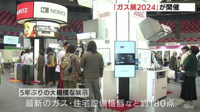 大規模な展示は5年ぶりで、最新のガス機器や住宅設備機器などおよそ180点が並べられています。