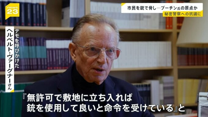 「デモの参加者が守衛のところでベルを鳴らすと、私服姿の若い男が門のところに出てきたそうです。男は流暢なドイツ語で『無許可で敷地に立ち入れば、銃を使用していいと命令を受けている』と。そう言って守衛と共に武装していた男がプーチン氏でした」