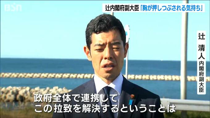 辻副大臣は「家族のことを考えると胸が押しつぶされる気持ちだ」と話し帰国を実現するために一層の努力をすると述べました。