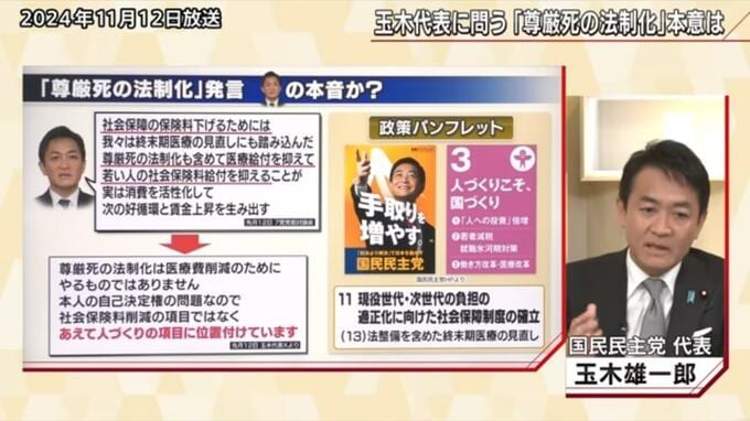 直後に本人がSNSで誤解を解く説明をしているが、選挙期間中に尊厳死の法制化に言及した本音を聞いた。