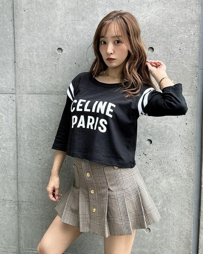 板野さんは「今年の秋はチェックスカート」と木の葉とブーツの絵文字を添えて6枚の写真を投稿し、秋のファッションを紹介しました。